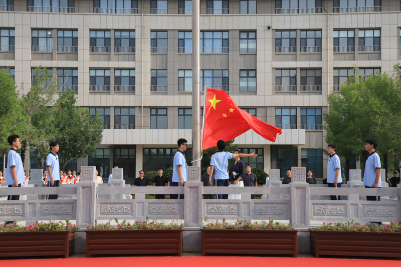 在庄严的国歌声中,五星红旗冉冉升起,全体师生肃立注目,激昂的旋律奏响了青春的号角,也点燃了学子们奋发向上的信念。