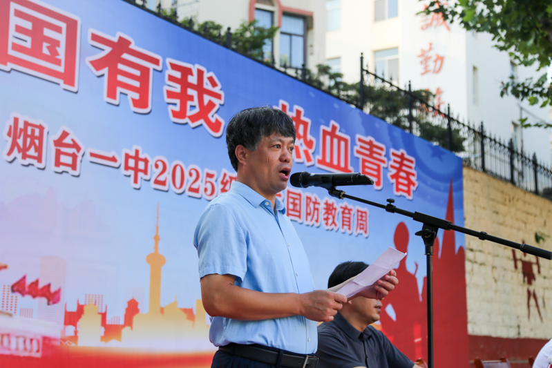 烟台一中党委委员、德育处主任王文乾以“淬炼青春,强国有我”为主题,寄语新生“以军人之姿砥砺品格,以爱国之心奔赴未来”。