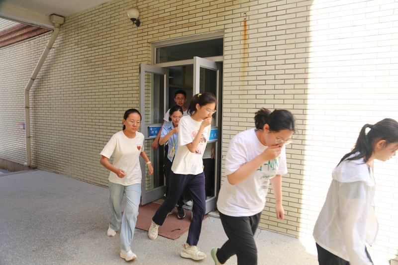 在消防安全教育课后,进行了消防安全疏散演练,学生按照预定的疏散路线,紧张而有序地从教室撤离到操场安全地带。