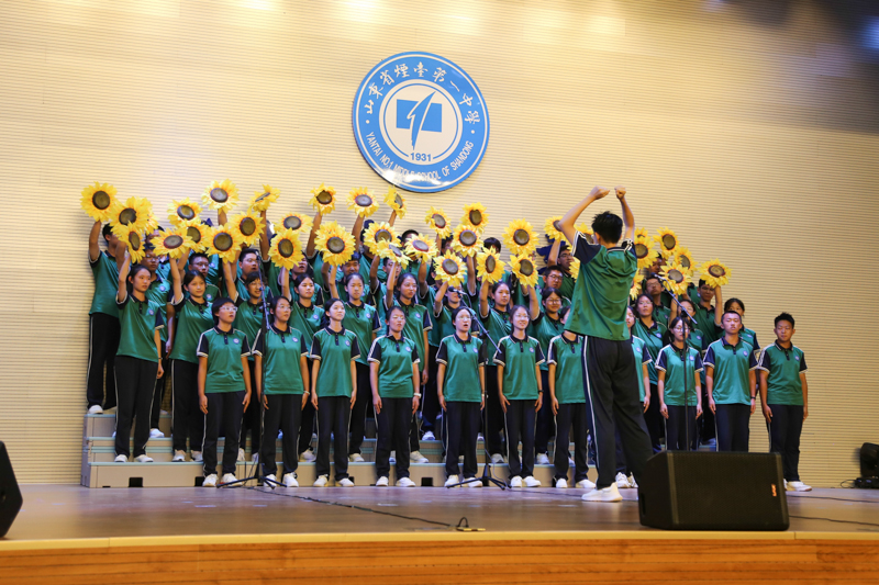 各班依次登台,齐声唱响《烟台一中校歌》与《强军战歌》,歌声激昂豪迈,响彻云霄。比赛展现了班级凝聚力和艺术风采,传承红色基因,深化爱国主义教育。