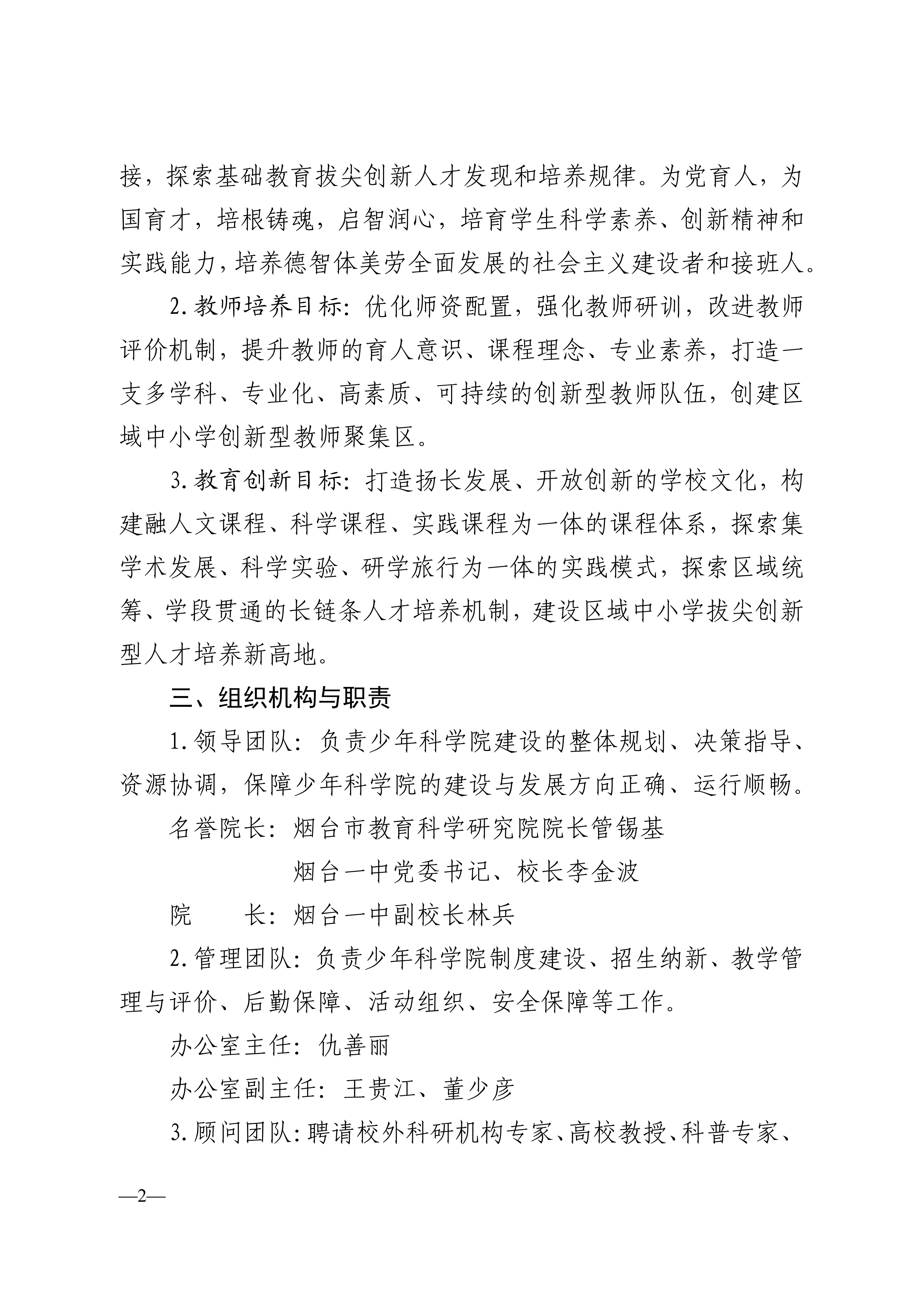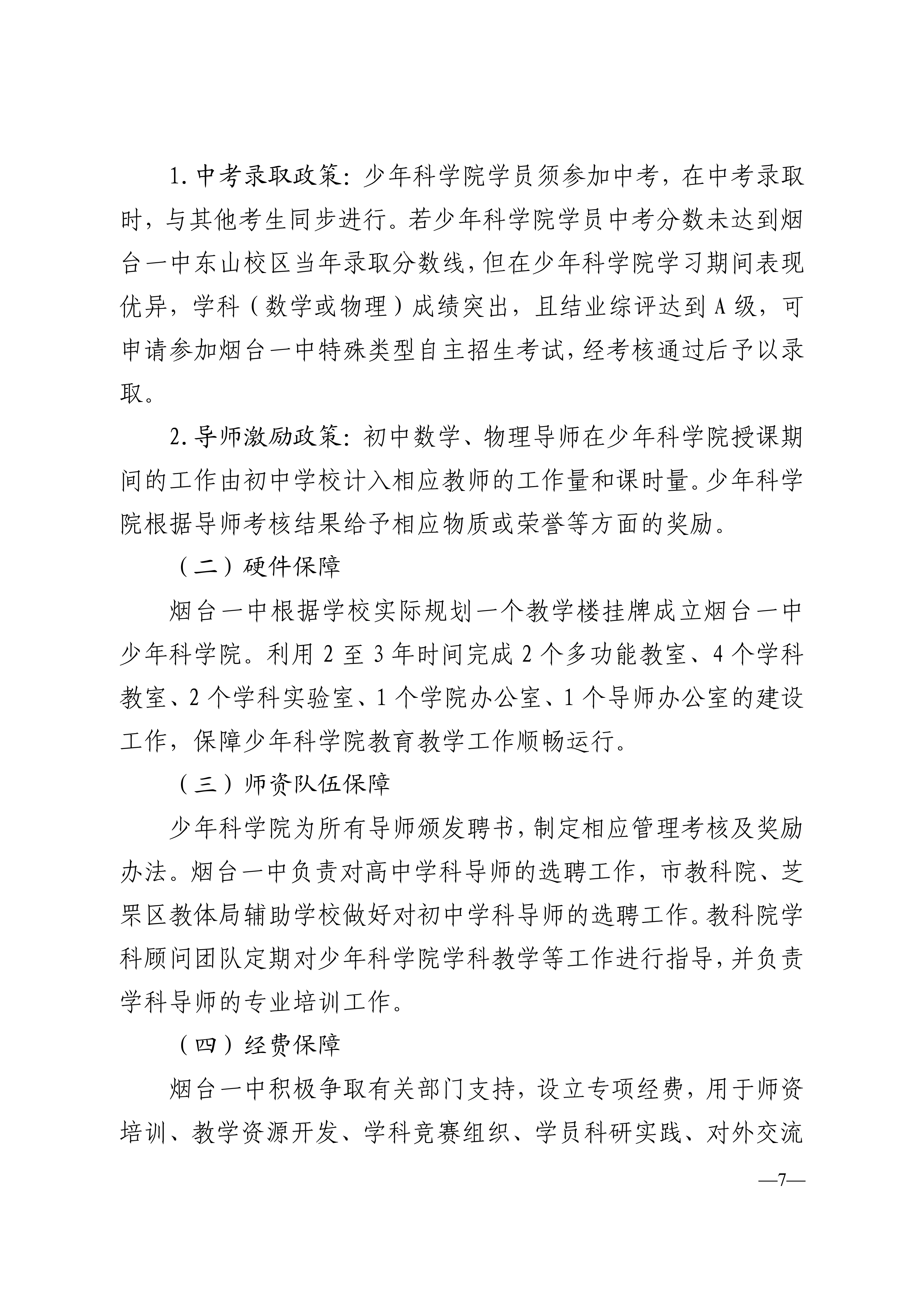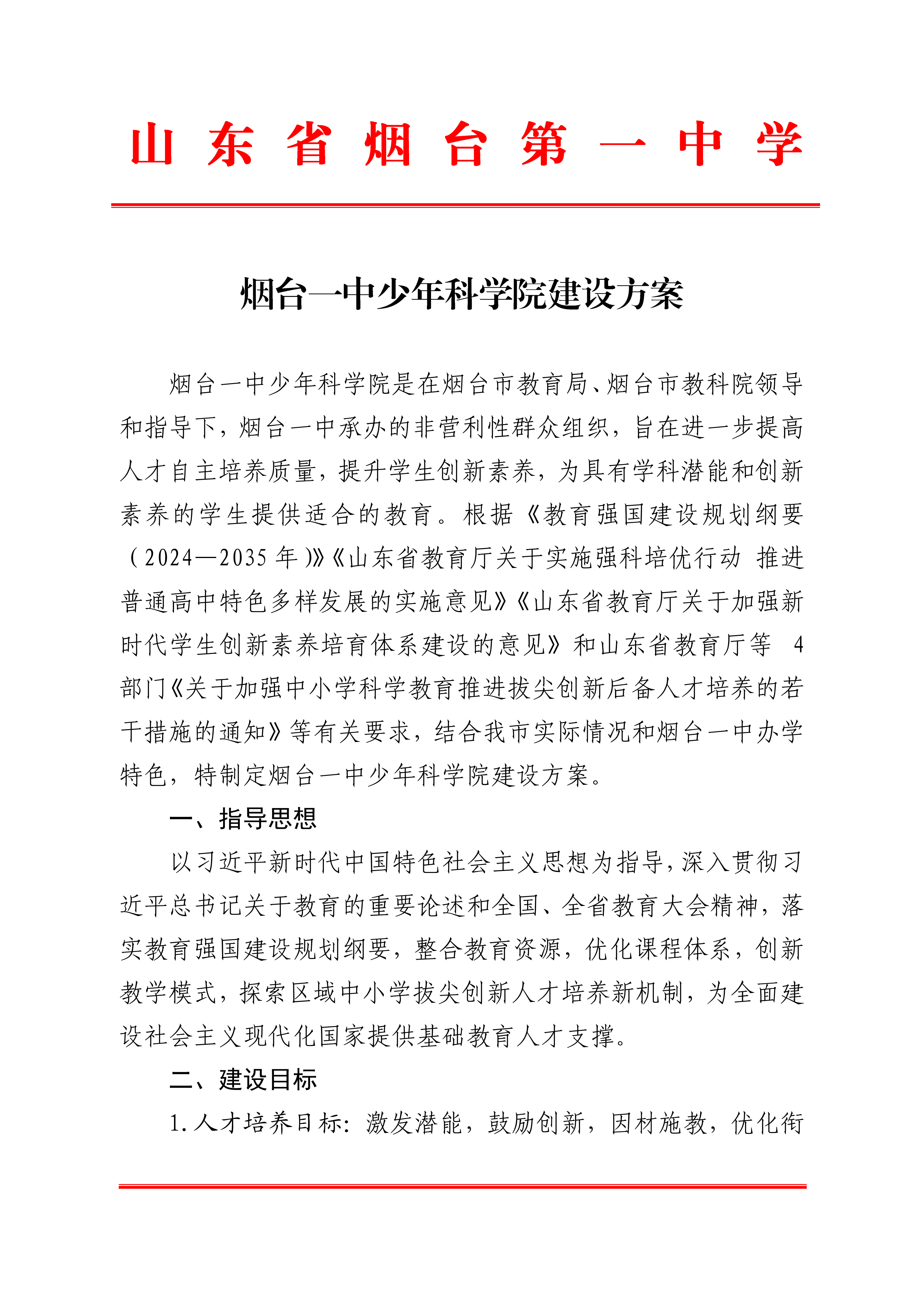 烟台一中少年科学院建设方案